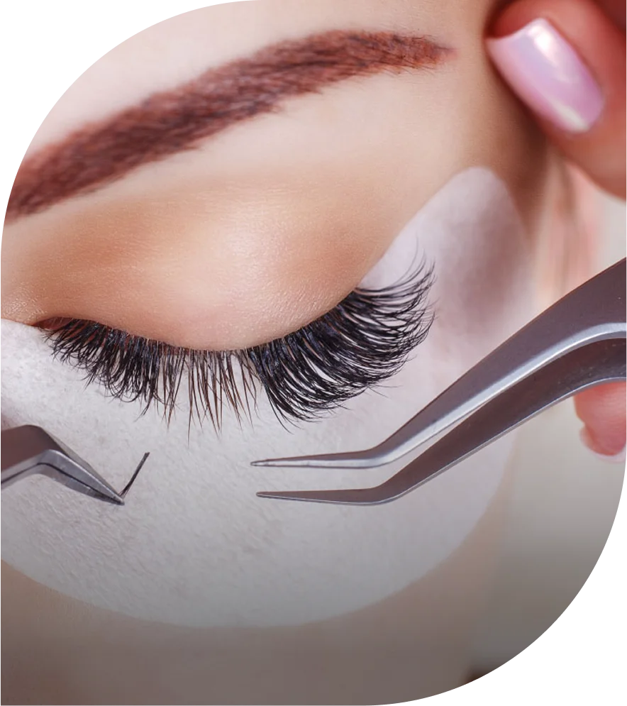 Applying multiple lightweight lash extensions to each natural lash, creating a fuller, dramatic, and voluminous effect.